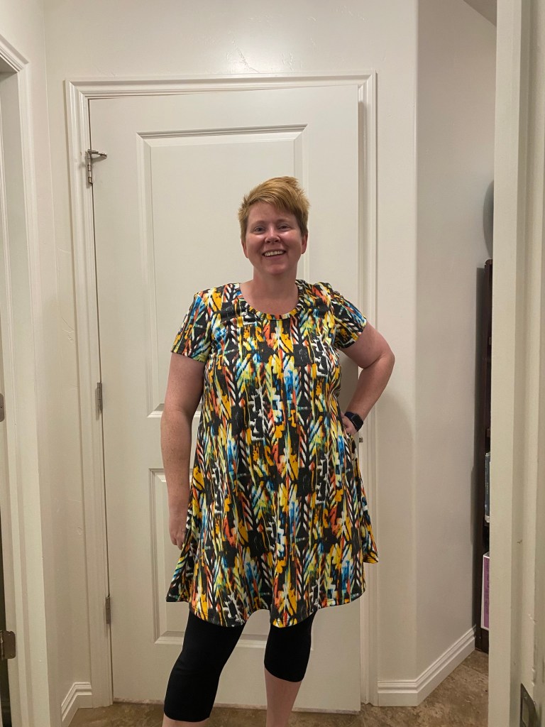 And I made a dress out of this fabric that I bought 9 years ago. so fun. This is the Laundry Day Tee pattern from Love Notions