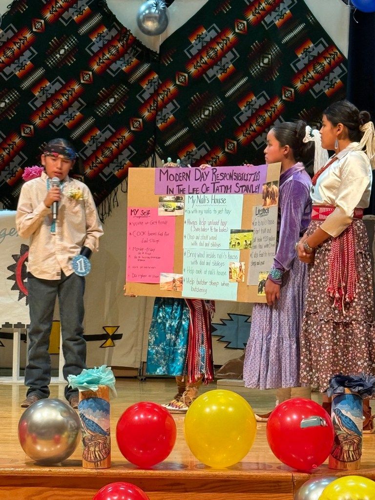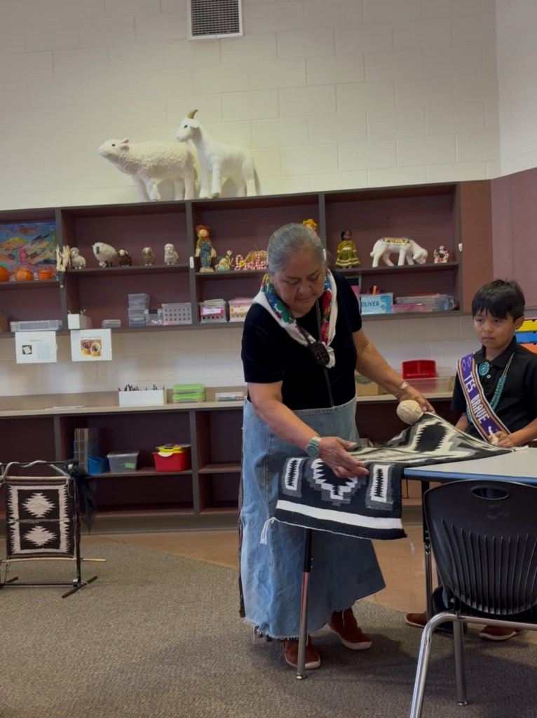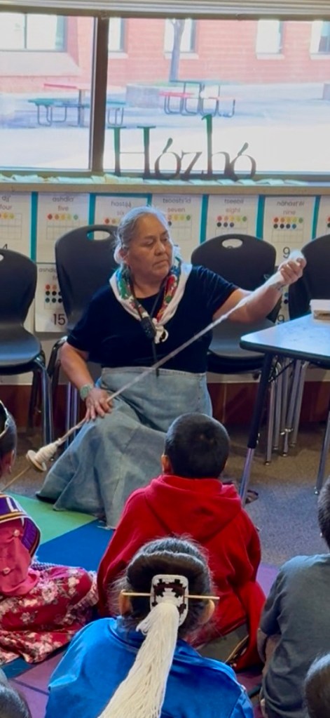 After he told the story, the Navajo elder explained that in the old days, giants in the stories represented disease– unknown illnesses that could wipe out a whole family or even a whole clan. But, he said, the stories are still for today. Today the giant represents drugs or alcohol. The youth need to listen to their parents, listen to their elders, just like the boy listened to the little chei. (Chei is also the Diné word for maternal grandfather.) The teachings of your elders are like the hat that the chei gave to the boy so that he could defeat the giant.