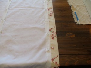 Then I sewed the lining to the face fabric. I really debated about how to attach the ring tape to the shades. The book was pretty vague at this point. It just said, “Sew around the ring tape.” But I didn’t want sewing lines up and down the whole shade. I have never seen one like that. Finally, I pinned it on