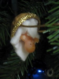 23. Favorite Ornament Theme or Color–every year my Grandma Bennion makes her grand/great-grand children an ornament. I love them! My favorite is the baby Jesus in a walnut shell. My kids like the chairs that hide candy. My DH likes the suger plum fairies.