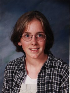 Then, when she was 9 or 10, Dad gave her a “pixie” hair cut. Strangers kept mistaking her for a boy. Which made me want to beat them all up. I appliqued a huge ladybug on a purple t-shirt for her. I was so proud of it, and she definitely looked like a girl. But people would still say out loud that she looked like a boy. I hated them all for being so mean and dumb.