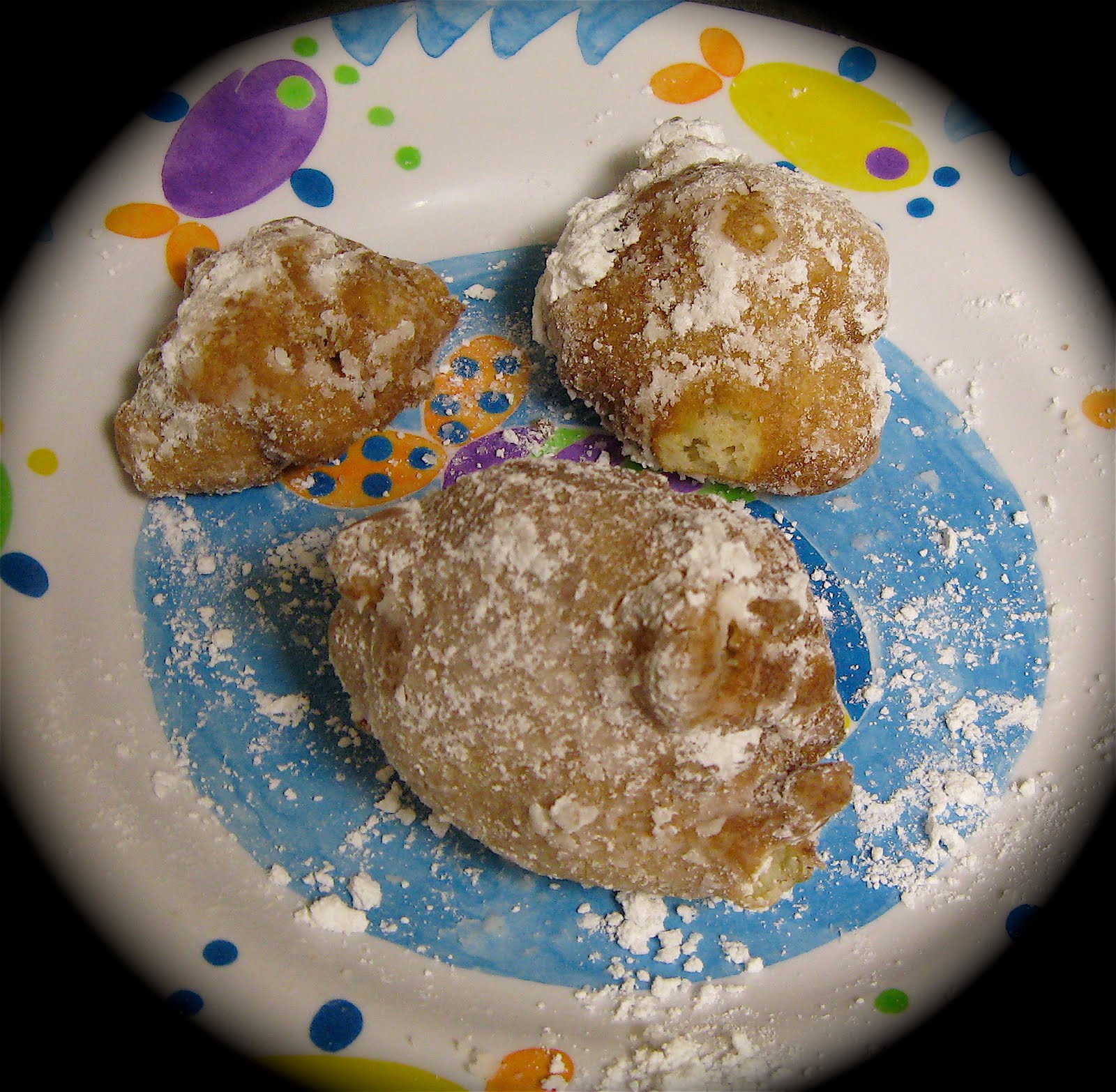 4. Drain on paper towels. Put the powdered sugar in a brown paper bag. Drop in the fritters and shake to coat.