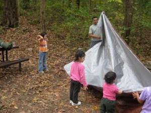 Our neighbor to the left had about six 11-13 year-old kids. What we heard from their direction all evening was: ” You guys come help me.” “I could use some help here.” “come ON, guys!”