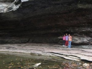 We stopped to eat our sandwiches in Cobb Cave (so named for the ancient corn cobs and other indian relics found there. We were happily eating our lunch, when suddenly we heard singing. A beautiful hillbilly love ballad, ringing through the cave–which was shaped like a natural amphitheater. I looked around and saw, clear across the cave on a heap of rock, a man, singing to his lovely lady. It was so sweet. They were far enough away that I couldn’t even really see their faces clearly, but the cave amplified the sound, so I could hear perfectly.