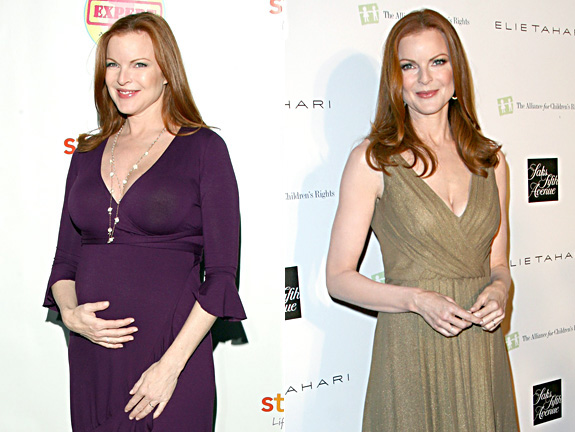 The thing I kept thinking as I looked at the pictures was the pregnant celebs were prettier than their post baby skinny selves. Preggo they look glowing and radiant and healthy. On the other hand, in their skinny pictures, most of them have really sharp, anglular faces that look tired and starved next to their rosy pregnant twins. Also, you can see their arm bones under their skin, even on their upper arms.