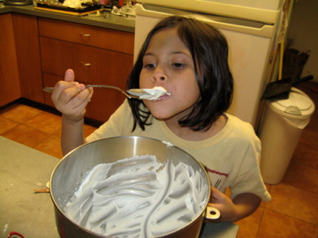 I just made meringues too!!! I turned mine into individual pavlovas (Australian National Dessert) by topping with real whipped cream and fresh fruit. Ahhhhh so wonderful.