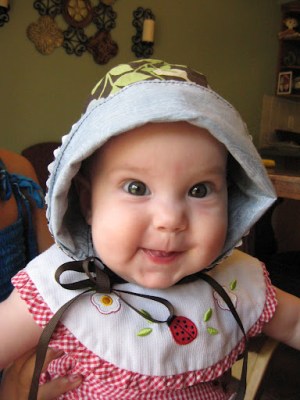 P.S. my awesome friend over at Well-Bread Mom made this cute sunbonnet for Baby.