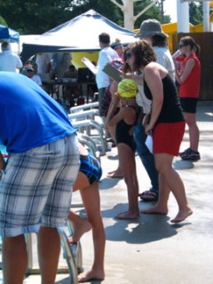 At our meet last weekend, there was an ice cream stand next to the pool. She was pestering me about getting ice cream and I was saying “No” of course. Finally she said, “Mom, if I win my heat, which ice cream can I have?”