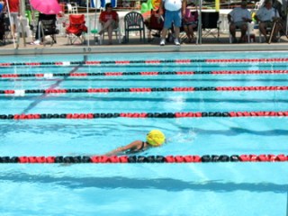 | Benji doing the 50 yard backstroke. He has been lapped here, which is why that other guy is going the opposite direction. rats. |