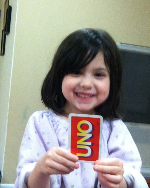 She loves Uno so much that even if she can win, she will pretend she doesn’t have the right card and draw a whole bunch to keep the game going.