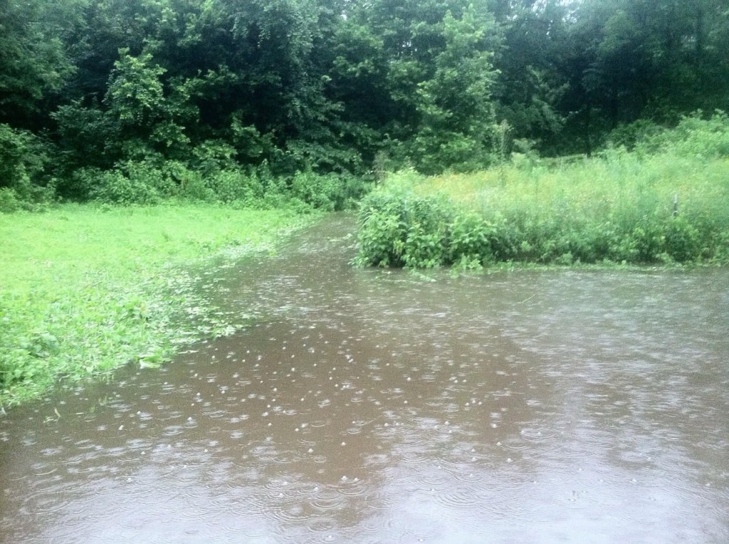 Flash flooding in my back yard! It was as deep as my knees.