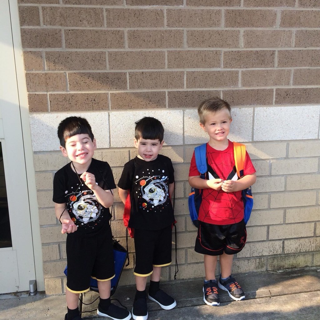 First day of Preschool for these 2 Tyranos Hermosillos (beautiful tyrants) and their best friend Westley.