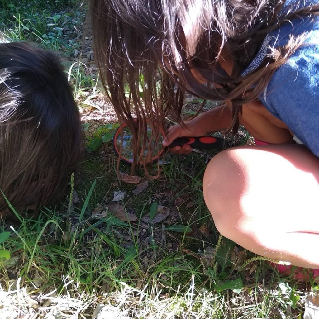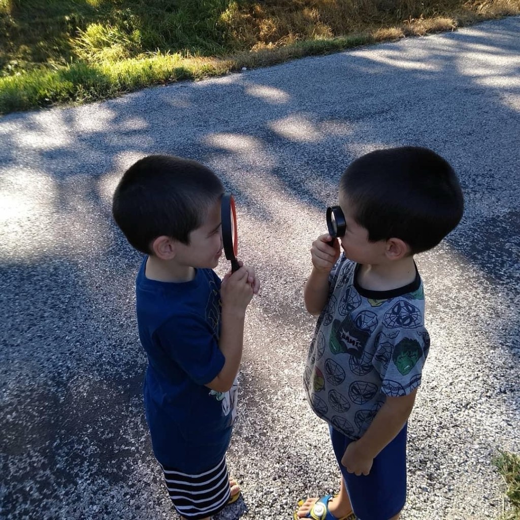 Today our nature walk got no further than the driveway, but looking at stuff through magnifying glasses is very exciting.