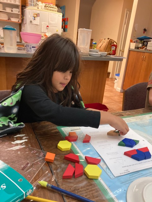 We begin school every morning at 8:00 am with CNN10 Student News. Then we sing and do our weather journals. Nature Walk was next, but now that it’s dark and cold outside, I’ve moved Nature Walk to the afternoon. So the big girls do piano and violin practice, and the littles and I do math.