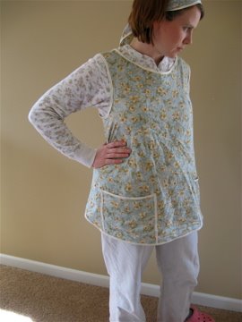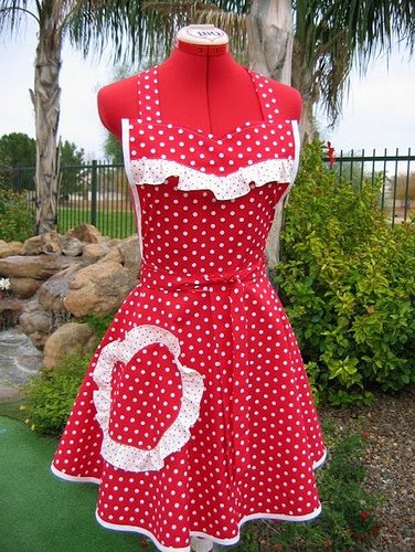 I actually recieved this apron over a month ago…before Valentine’s Day. However, there was no one to take a picture of me in it, since my DH was gone. He’s home now π and I got him to take a picture of me. I L-O-V-E this apron. It turned out that my cousin was my partner and made it for me. I need this pattern. It looks better on me than any of the other aprons that I own. (And I have a plethora.) This apron is made for my shape.