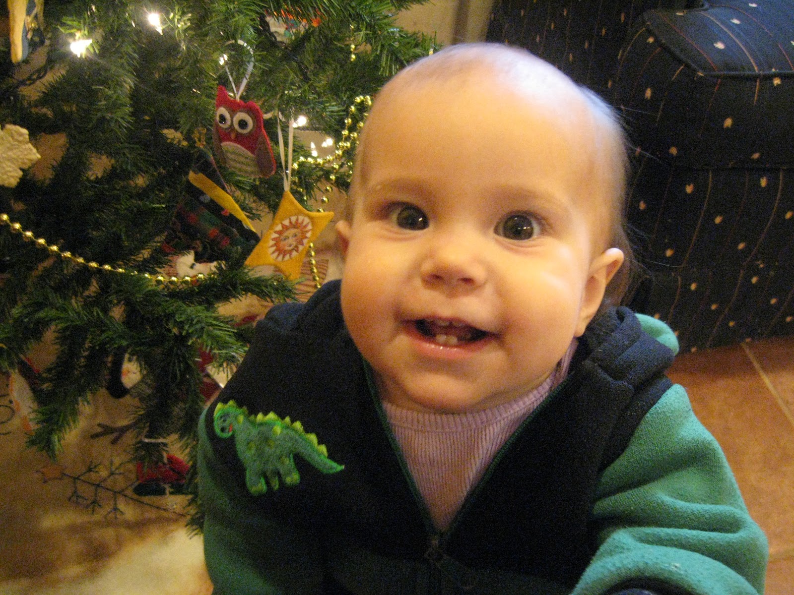 Baby Dumpling was so excited about the tree and the Christmas penguins that she walked across the room for the first time.