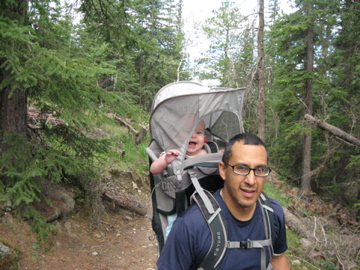 In the morning, we packed up camp and headed on down the road to the trail head for King’s Peak where we would meet Blueberry Pie and his uncle. We lost about an hour of time because the cap to our gas tank broke, but we still got to the trail head in plenty of time. However Blueberry Pie and Uncle were late. Finally, as rain threatened, the Captain set up his tent, and the kiddie pies and I left him there and headed on to Salt Lake City, where we planned to spend our days in comfort while the men folk backpacked up and down the mountain.
