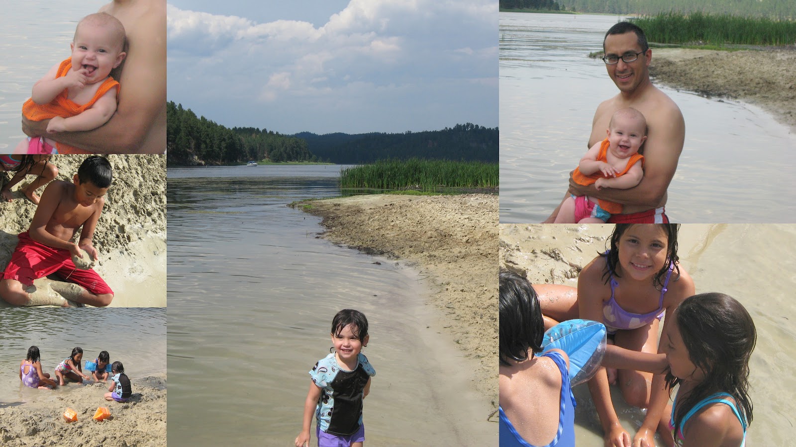 Then we took the kids to a nearby pond for swimming. It was the grossest, stinkiest pond I have every seen. Banana Cream Pie (who I remind you is only 4) said with great disappointment when she saw the pond, “I thought you said we were going swimming!” Luckily, one of my uncles brought his huge river raft, which was tons of fun for the teenagers to play on and saved the day. Apple Pie took off her swimsuit and played entirely naked, except for her pink crocs and a pool floaty around her waist.