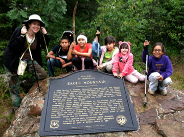 The Scooter Pies are not paying attention to the ranger discussion about telescope lenses.