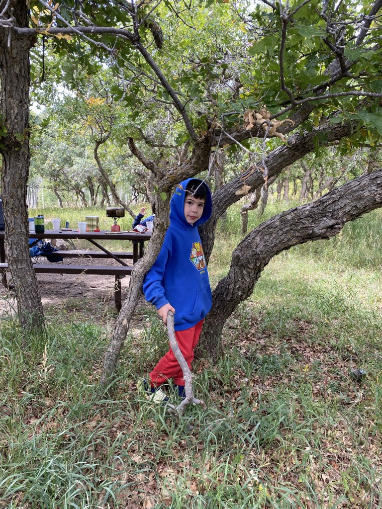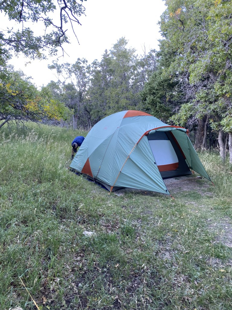 You see, the resident Captain, wanting to make things easy on me, had reserved 2 hotel rooms in Laramie, WY, for Thursday night. But I talked him into canceling that reservation and reserving a campsite at Curt Goudy State Park instead. That would save money and there was a playground for the kids to play on and, in theory, run off all the energy they would have from sitting in the car all day. As described above, I had a brilliant plan to make dinner and camp setup a breeze.