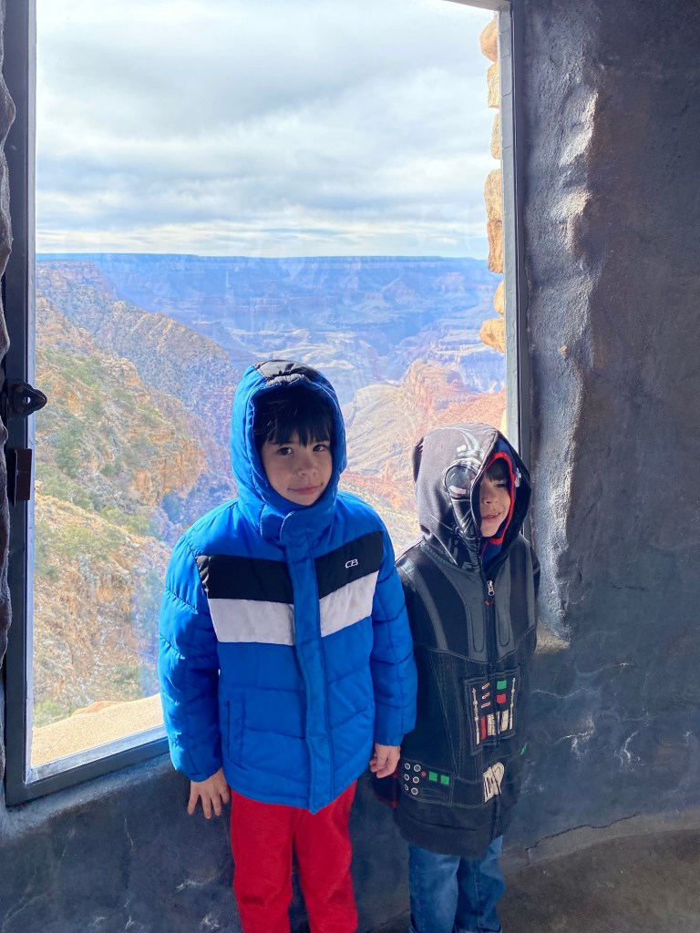 Then we headed to an AirBnB I had booked in Williams, about an hour south of the Grand Canyon. It was a super cute cabin with a gas fire place. The kids loved it and ran up and down the stairs, pausing to bask in front of the fireplace and rest.