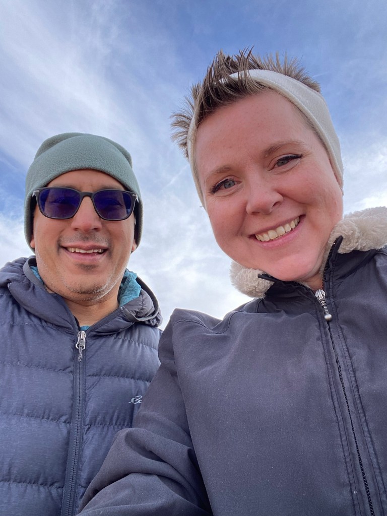 However, the morning was foggy and snowing, and the kids just wanted to stay at the cabin in front of the fire. Additionally, Linda had a terrible migraine, and my back was really hurting me. None of my usual stretches or creams were helping.