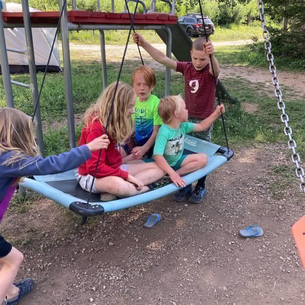 Banana Cream Pie: the sand box, flying kites, playing at the indoor playground at the Cody KOA