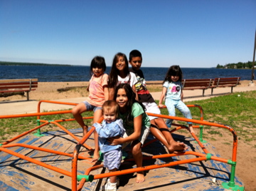 On the way down, DH had a headache from the worries of transporting the family through such unfamiliar territory with mostly unmarked roads. When we got to the nearest town, L’anse, I suggested we stop at a park to relax for a bit. We stumbled upon this little playground right on the shore of Lake Superior and spent 20 of the most glorious minutes of my life playing in the sunshine and breeze. Every time since, when someone says, “picture the perfect place” or “Picture yourself on a beach,” I imagine myself back in this little park.