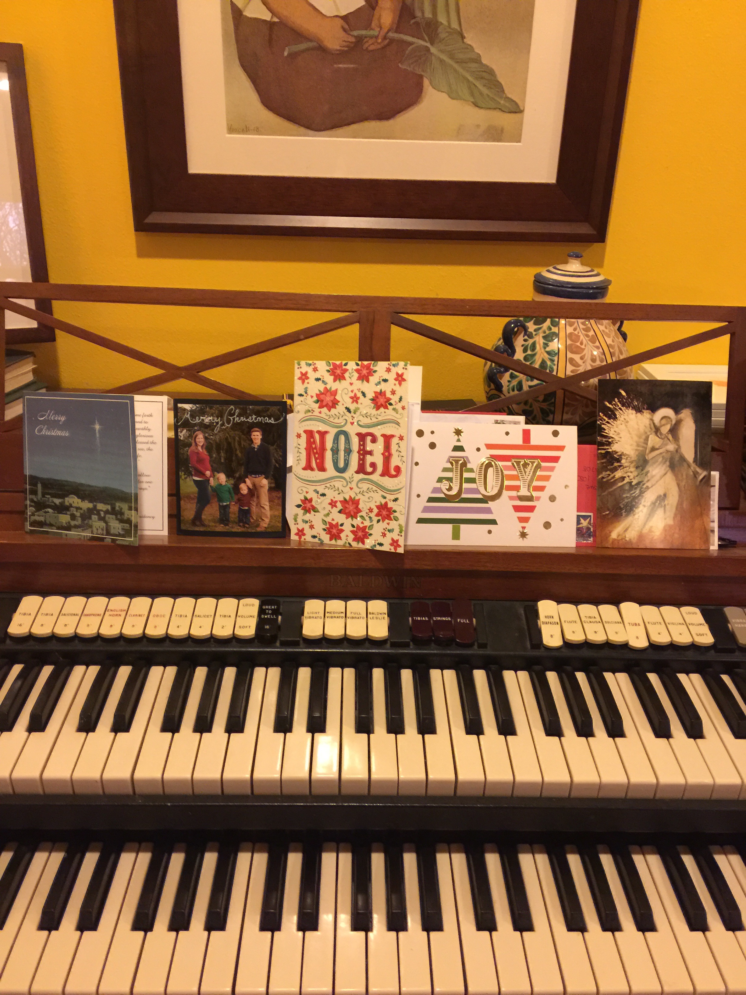 The final number came and Pumpkin Pie and I scuttled over to the organ. The singing was strong. I made many many mistakes, even on bits that were easy, but none of them were awful showstoppers. The final bars were not as good as I had hoped and much below what I knew was possible. Someday I hope that all the yoga I’m doing will help me to find a way to calm my mind when I’m under stress so that I don’t freeze up so badly.