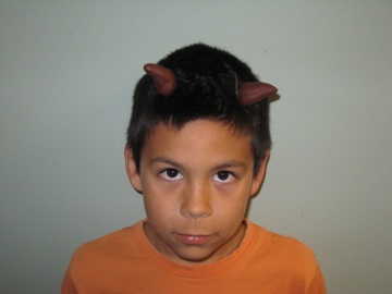 I got the clay and forced Bubba to make his own horns which I hot-glued to some black hair barretts. They didn’t stay in very well.