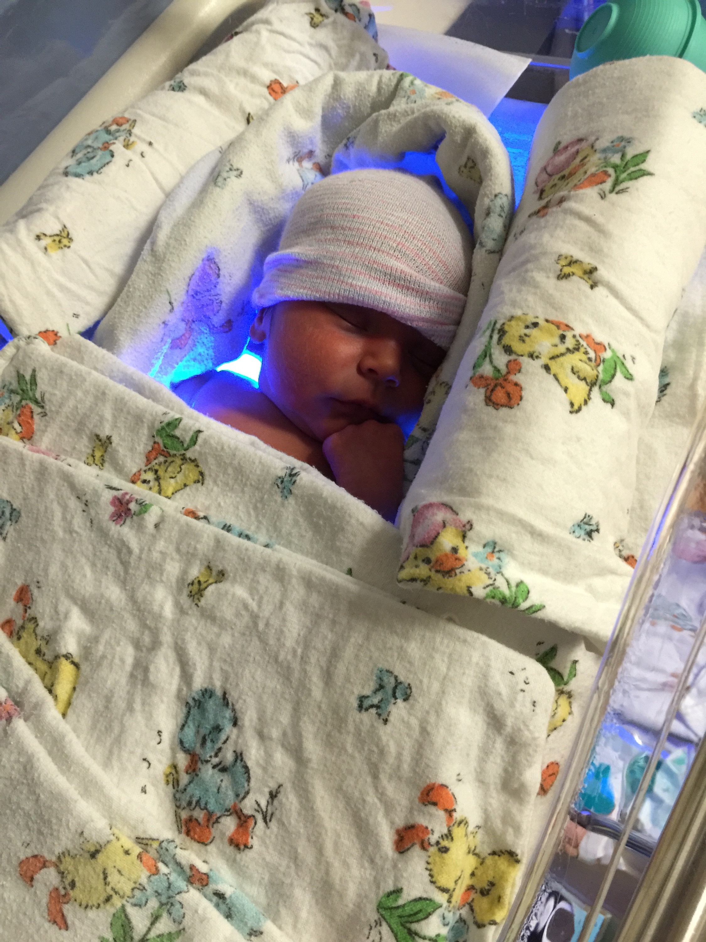 Then the twins’ temperatures and blood sugar levels suddenly plummeted, and Skeeter developed jaundice badly enough that he had to go under the blue lights.