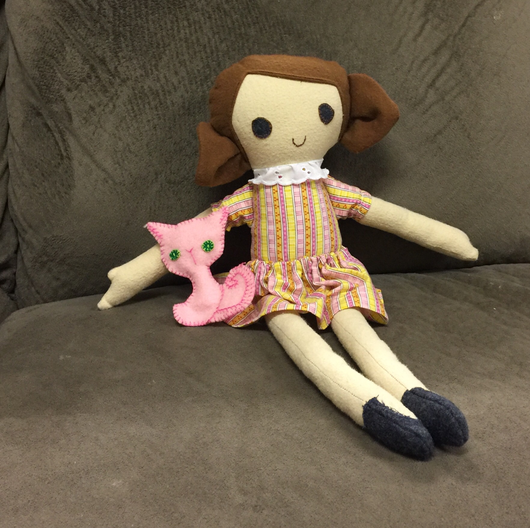 Banana Cream Pie found dolly the other day and said, “When are you going to make her a pink kitty? You said you would.” Did I?