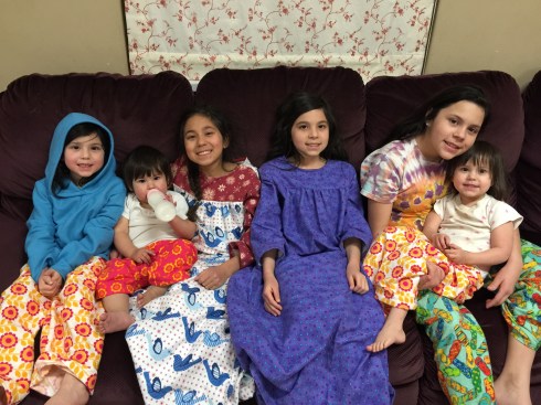 This year, I got all the girls’ Christmas pajamas cut out, but not sewn. Those almost pajamas languished in a pile for more than 2 months.
