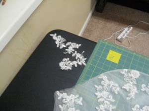 I watched YouTube videos and learned how to shape a lace overlay for a bodice so that the seams are invisible.