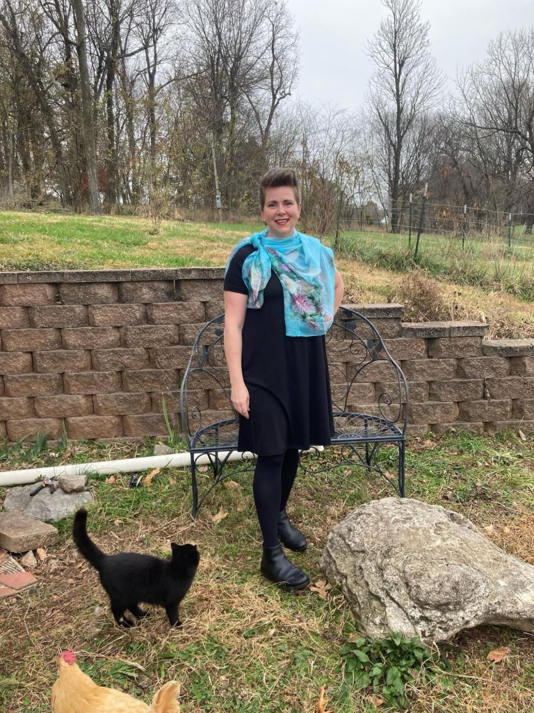 I bought the long version of the Wool& Maggie. It barely brushed the top of my knee. At some point, one of my kids threw Maggie in the dryer, and she got an inch shorter. This made her feel too short to wear without tights or leggings. Here are some of my Sunday outfits: