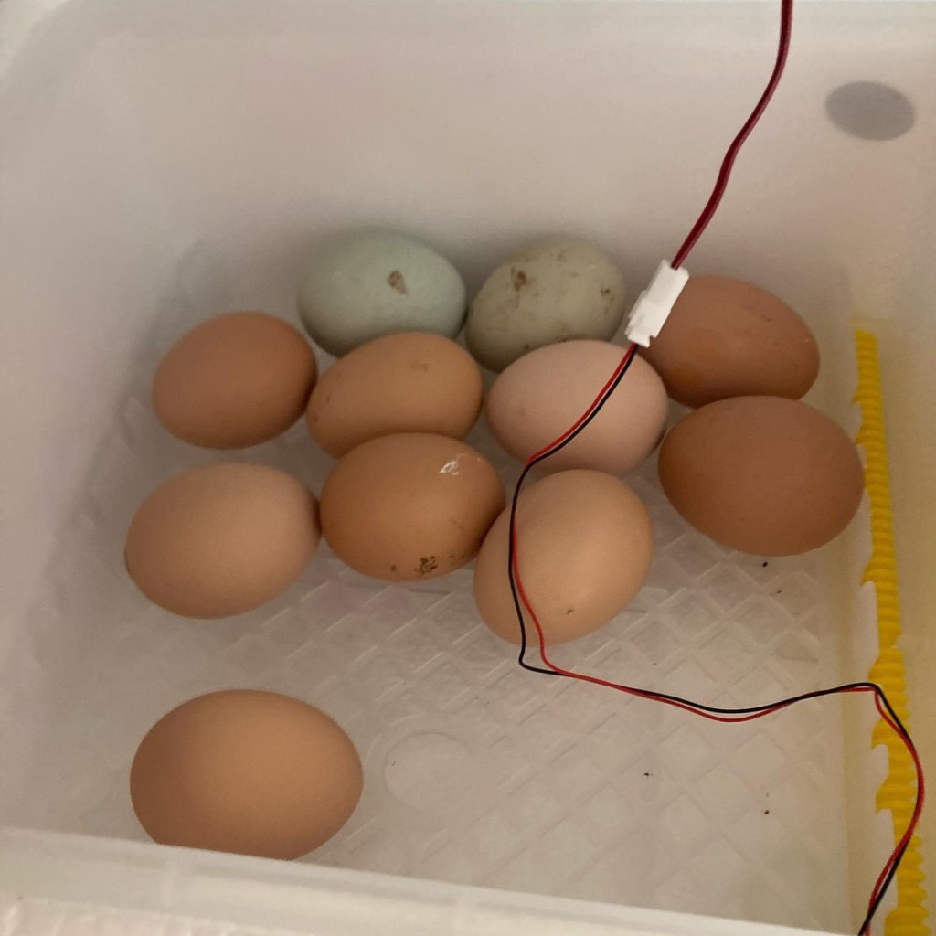 Granny and Grandpa gave us an incubator for Christmas. There have been eggs it it for 19 days-per Banana Cream Pie’s custom-made hatching day countdown. Only three days until fluffy cuteness.