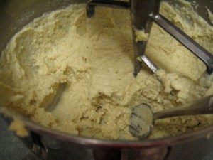 Choice #1: Using your mixer, whip the butter until fluffy and then add the masa and beat it until the dough is spongy. This is the authentic way. My dear husband’s Abuelita wanted me to beat the masa dough (by hand with a wooden spoon) until it was fluffy enough that a pea size amount would float in water. Warning: it may burn out your mixer.
